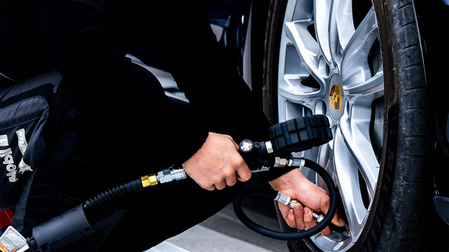 来場されたポルシェ車両の3点チェック(空気圧、ホイール締付、ライト点灯点検)の実施