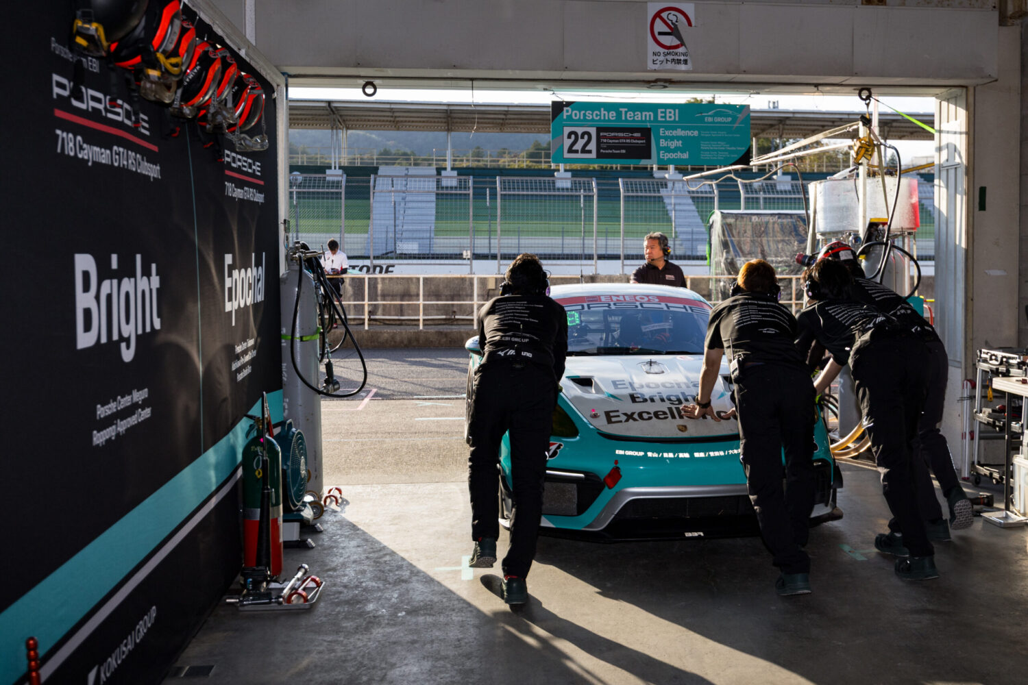 厳しい性能調整もあり、第4戦SUGOで惜敗を喫したPorsche Team EBI。7月中にオートポリスで開戦した第5戦は、ST-Zクラスが“お休み”となるレースだったため、チームは長い待期期間に入っていた。