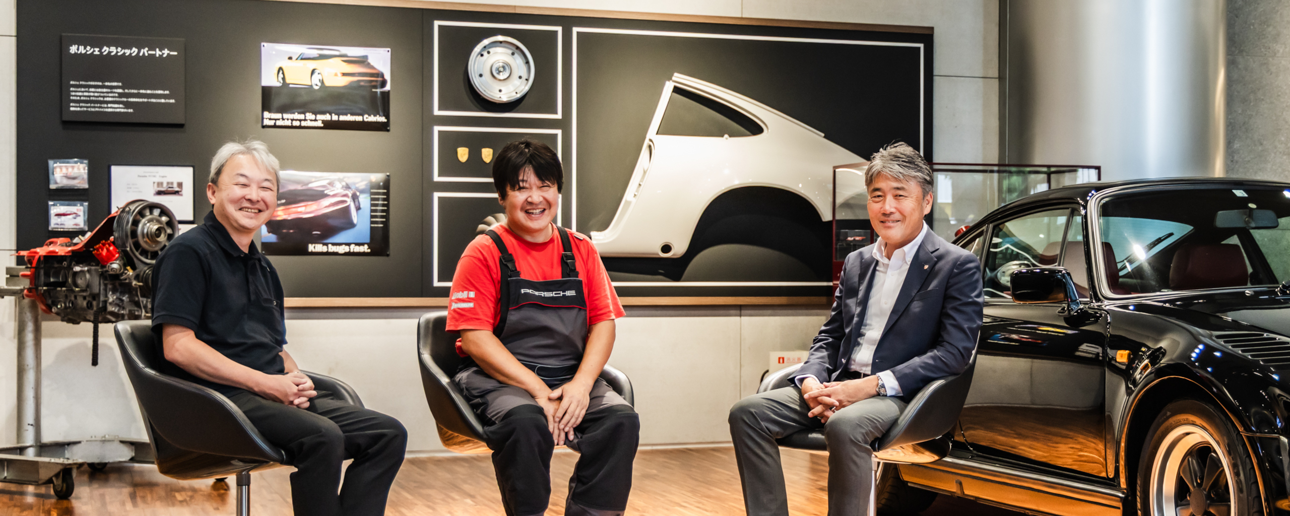課題は山積していますが、世田谷のクラシックパートナーがお客さまに評価されてきた背景に、クラシックについて知り尽くした平林、菊池、田中の存在があります。彼らは、EBIグループ のクラシックビジネスにおいて誰もが認める、ポルシェの“プロフェッショナル”です。