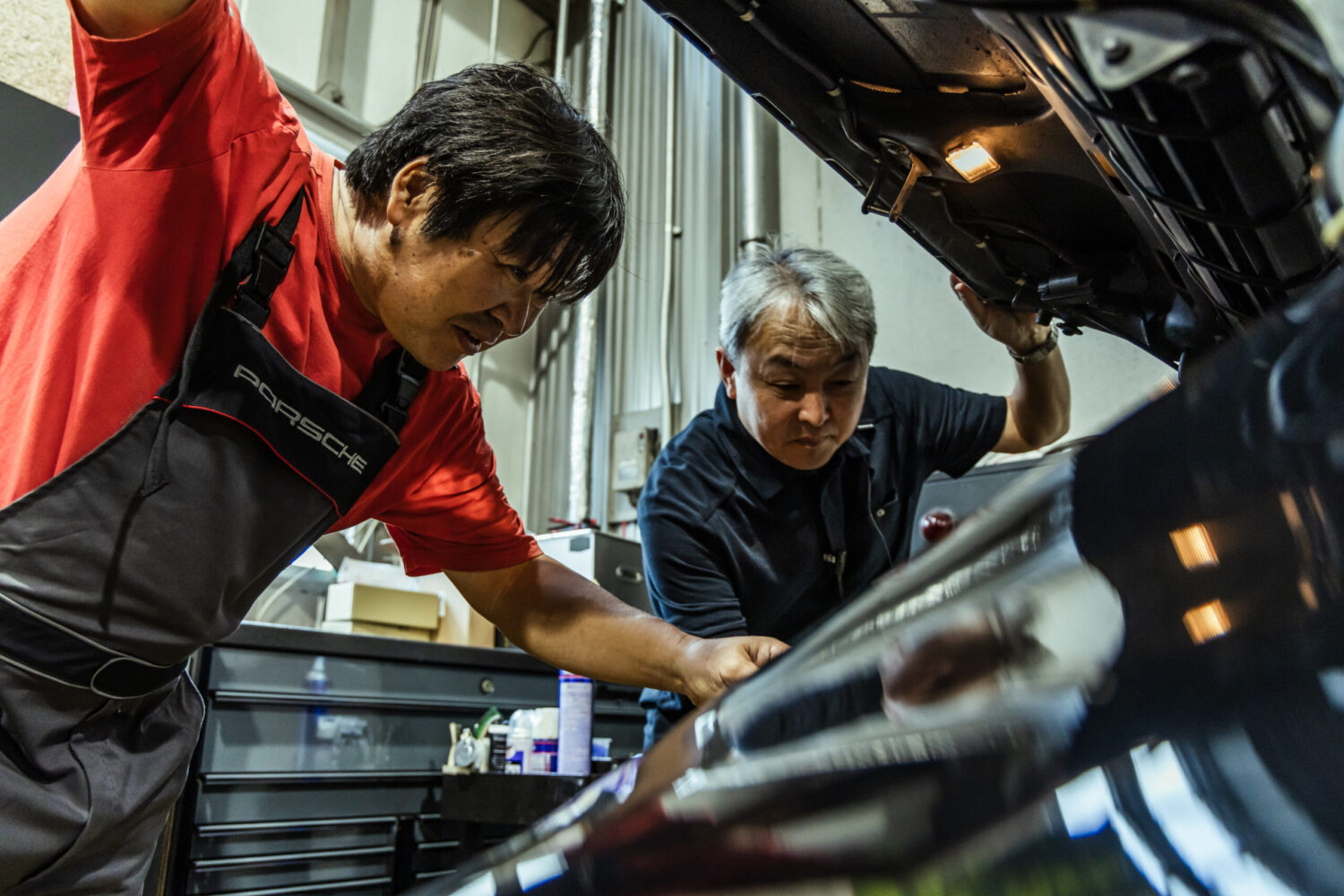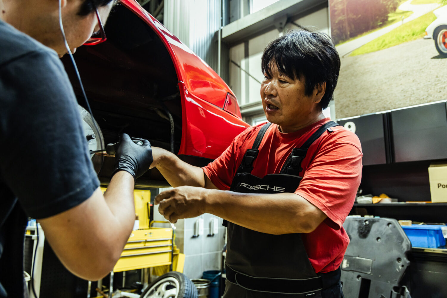 そのため、菊池は現行モデル担当のメカニックたちに対して、3ヵ月スパンでクラシックポルシェの修理、整備・点検のコーチングを行い始めました。ゆくゆくは世田谷以外の他の拠点からの希望者を受け入れ、技術を共有する仕組みを広げることも視野に入れているようです。
