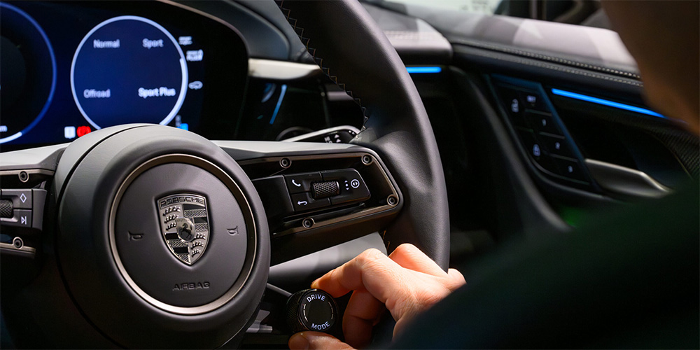 以前までのものとよく見比べると、程よい光沢感と繊細さが洗練された印象を醸し出し、新しい〈マカンEV〉に本当によく似合っています。